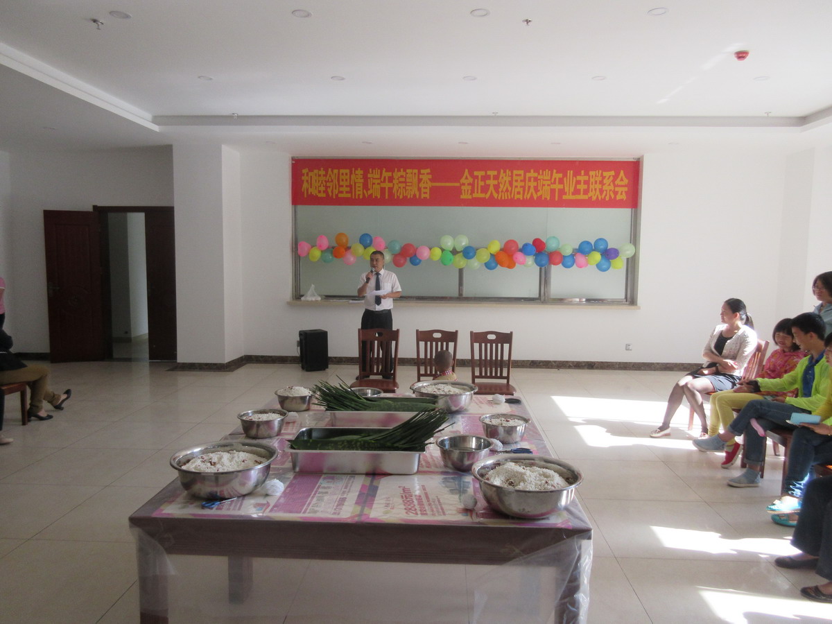 •     為繼承和發(fā)揚民族優(yōu)秀傳統(tǒng)文化,營造和諧社區(qū)氛圍,增強小區(qū)業(yè)主鄰里間感情,豐富小區(qū)業(yè)主業(yè)余文化生活,201668,由金正天然居物業(yè)管理處和天然居銷售部共同主辦、藍(lán)天琴行協(xié)辦的天然居慶端午業(yè)主聯(lián)系暨包粽子大賽在天然居小區(qū)食堂成功舉辦,經(jīng)過前期籌備,活動當(dāng)天共有40余戶業(yè)主和意向客戶參與包粽子比賽,實際到場100余人。