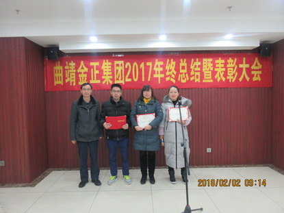 2018年2月2日上午,曲靖金正集團(tuán)2017年終總結(jié)暨表彰大會(huì)在公司辦公樓大會(huì)議室順利召開(kāi)。大會(huì)全面總結(jié)了曲靖金正集團(tuán)在2017年度的工作情況,并分析了各部門工作中存在的問(wèn)題,同時(shí)明確了集團(tuán)下一年度的工作方向和重點(diǎn),對(duì)各公司評(píng)選出的先進(jìn)員工以及通過(guò)房地產(chǎn)估價(jià)師、資產(chǎn)評(píng)估師、房地產(chǎn)經(jīng)紀(jì)人協(xié)理執(zhí)業(yè)資格考試的員工進(jìn)行隆重表彰。最后,在公司王總的監(jiān)督和見(jiàn)證下,各部順利完成2018年度目標(biāo)責(zé)任書(shū)的簽訂。