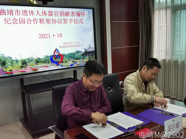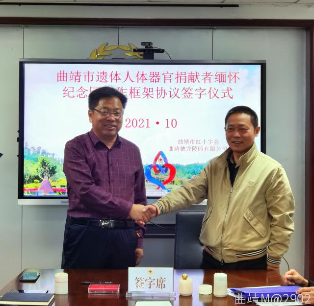 10月13日,曲靖市紅十字會舉行曲靖市遺體人體器官捐獻者緬懷紀念園項目建設簽約儀式,曲靖市紅十字會與曲靖德龍陵園有限公司正式簽訂了項目建設協(xié)議書。該紀念園的建成是我市首個,云南省第五個遺體人體器官捐獻者紀念園。市紅十字會干部職工、志愿者代表,曲靖德龍陵園有限公司董事長,總經(jīng)理參加簽約儀式。