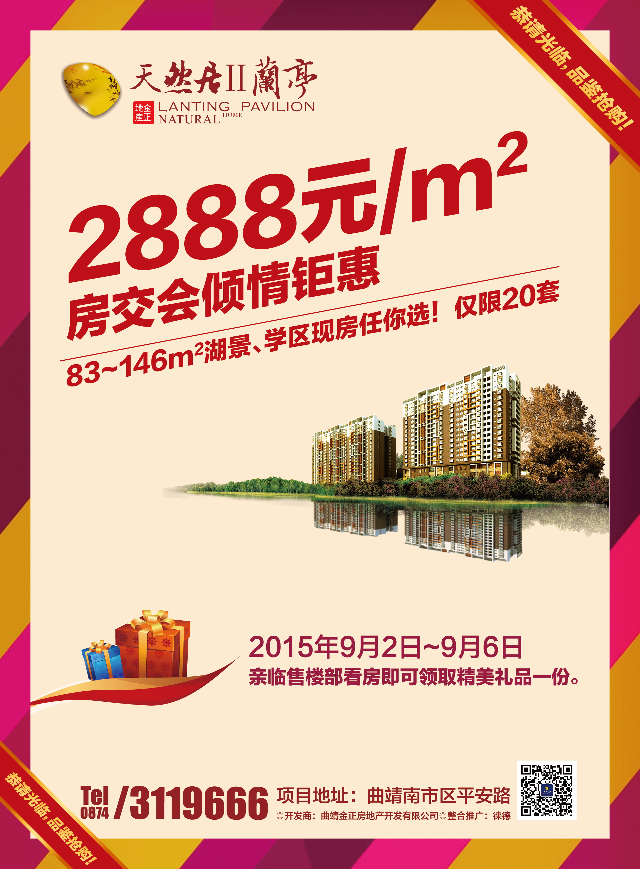 天然居Ⅱ蘭亭將在2015年9月2日至6日曲靖房交會(huì)期間傾情推出2888元/m²,不限戶型、樓層(僅限20套房源)的購房?jī)?yōu)惠活動(dòng),房源有限,先到先得!